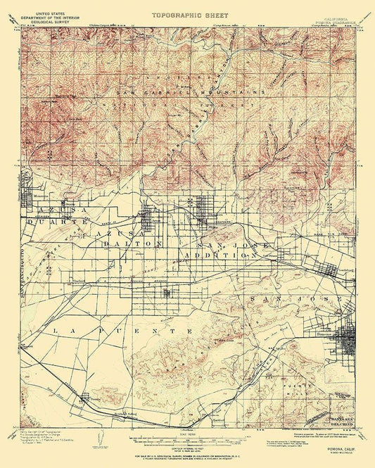 Pomona California Quad - USGS 1953 White Modern Wood Framed Art Print with Double Matting by USGS