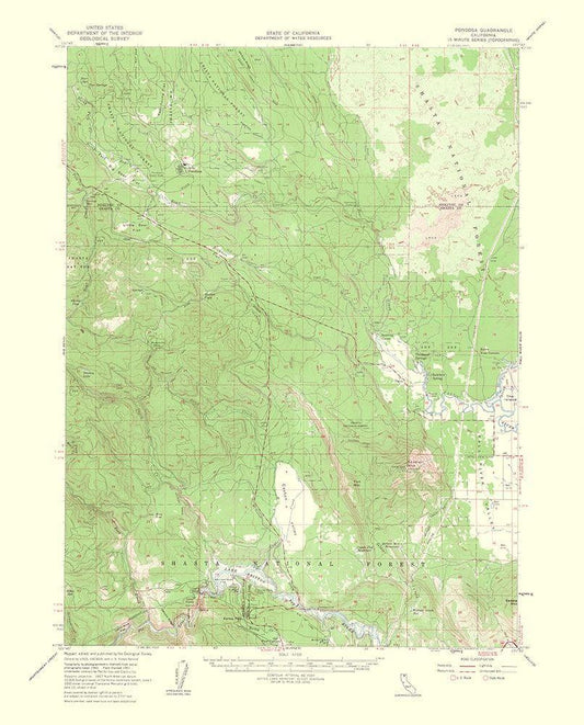 Pondosa California Quad - USGS 1956 White Modern Wood Framed Art Print with Double Matting by USGS