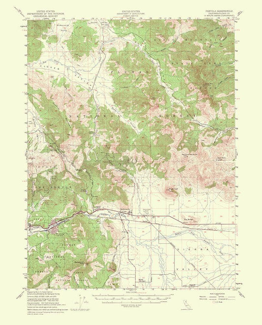 Portola California Quad - USGS 1956 White Modern Wood Framed Art Print with Double Matting by USGS