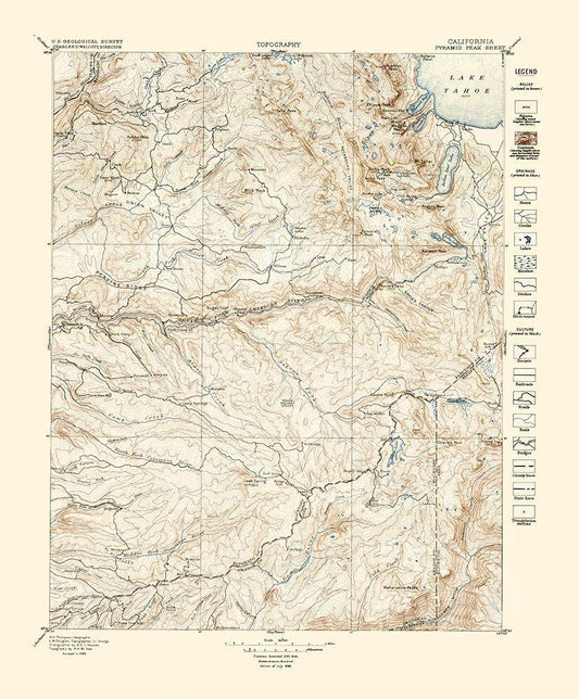 Pyramid Peak California Sheet - USGS 1896 White Modern Wood Framed Art Print with Double Matting by USGS