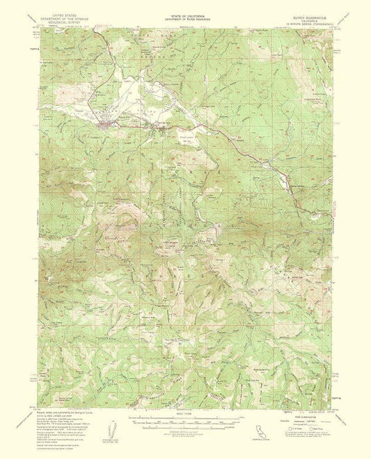 Quincy California Quad - USGS 1956 White Modern Wood Framed Art Print with Double Matting by USGS