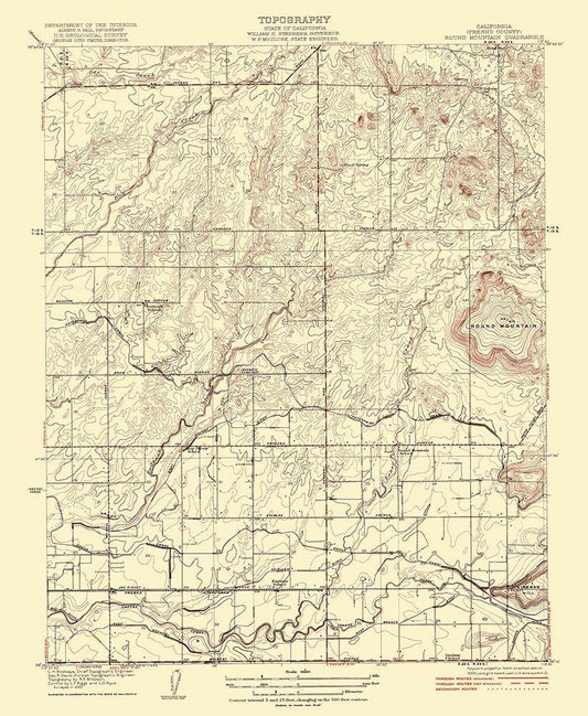 Mt Round California Quad - USGS 1922 White Modern Wood Framed Art Print with Double Matting by USGS