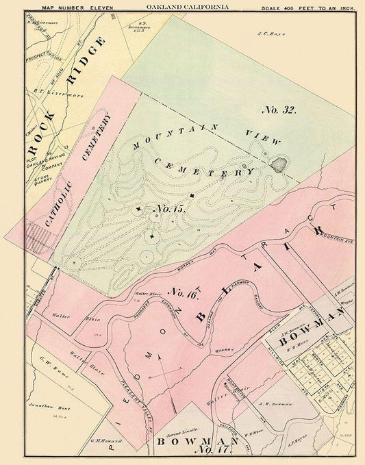 Oakland, 4th And 6th Wards California Landowner White Modern Wood Framed Art Print with Double Matting by Thompson
