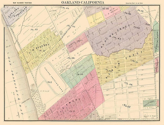 Oakland California Thirteenth Ward - Thompson 1878 White Modern Wood Framed Art Print with Double Matting by Thompson