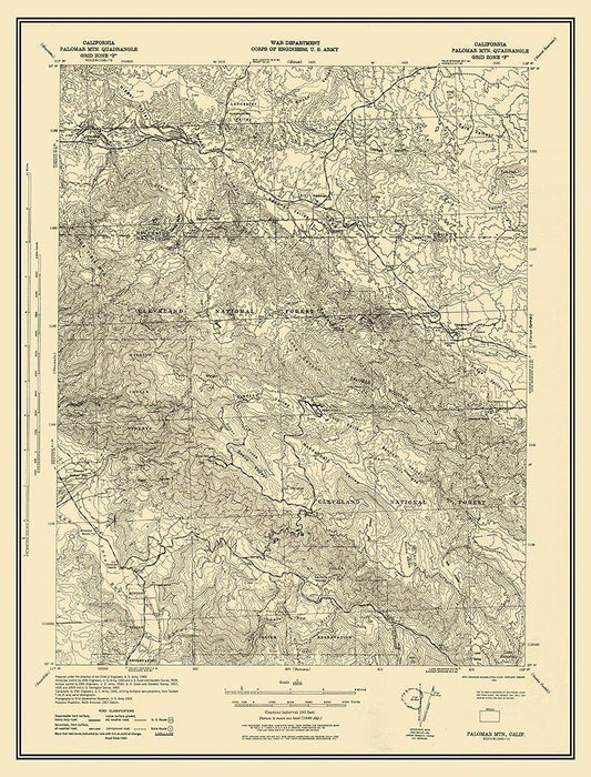 Mt Palomar California Quad - USGS 1942 White Modern Wood Framed Art Print with Double Matting by USGS