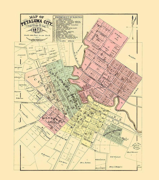 Petaluma California - Thompson 1877 White Modern Wood Framed Art Print with Double Matting by Thompson