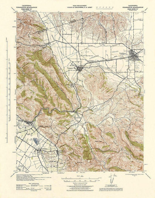 Pleasanton California Quad - USGS 1943 White Modern Wood Framed Art Print with Double Matting by USGS