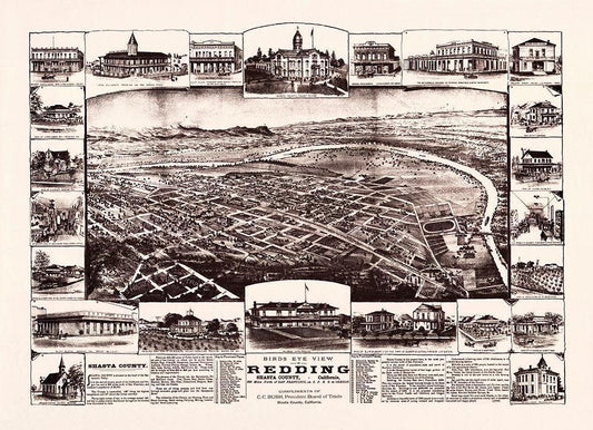 Redding California - Bush 1890 White Modern Wood Framed Art Print with Double Matting by Bush