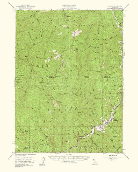 Orleans California Quad - USGS 1953 White Modern Wood Framed Art Print with Double Matting by USGS