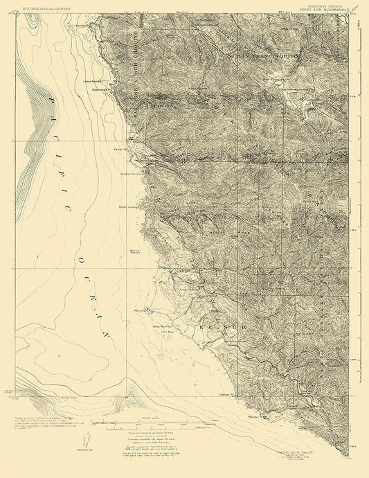 Point Sur California Quad - USGS 1925 White Modern Wood Framed Art Print with Double Matting by USGS