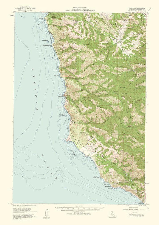 Point Sur California Quad - USGS 1956 White Modern Wood Framed Art Print with Double Matting by USGS