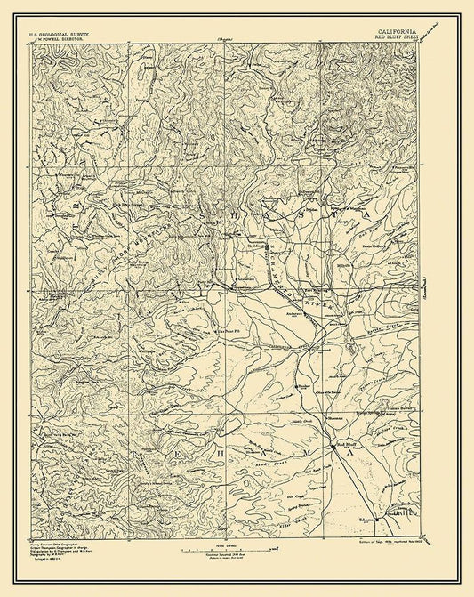 Red Bluff California Sheet - USGS 1894 White Modern Wood Framed Art Print with Double Matting by USGS