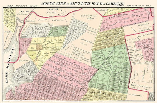 Oakland , North 7th Ward California Landowner White Modern Wood Framed Art Print with Double Matting by Thompson