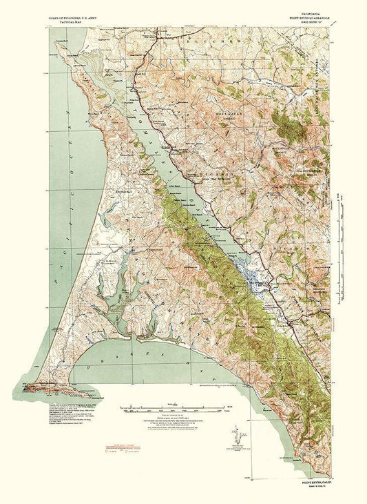 Point Reyes California Quad - USGS 1940 White Modern Wood Framed Art Print with Double Matting by USGS