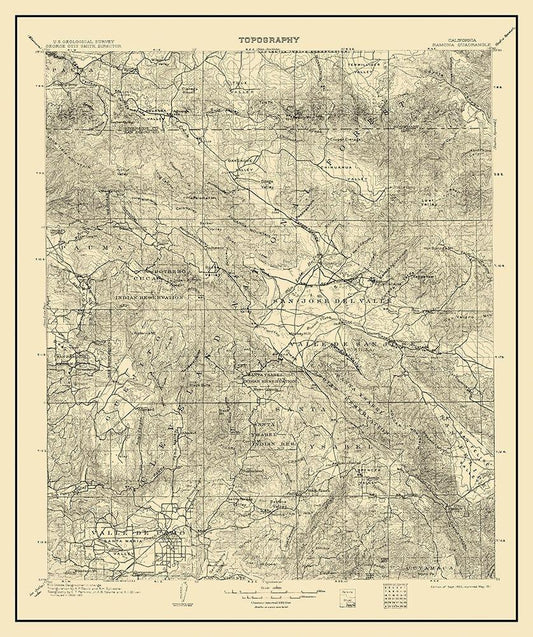 Ramona California Quad - USGS 1903 White Modern Wood Framed Art Print with Double Matting by USGS