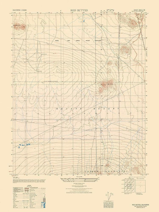 Red Buttes Sheet - US Army 1947 White Modern Wood Framed Art Print with Double Matting by US Army