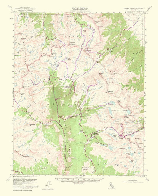 Mt Whitney California Quad - USGS 1964 White Modern Wood Framed Art Print with Double Matting by USGS
