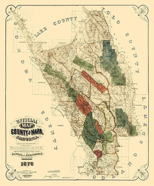 Napa California Landowner - Haas 1876 White Modern Wood Framed Art Print with Double Matting by Haas