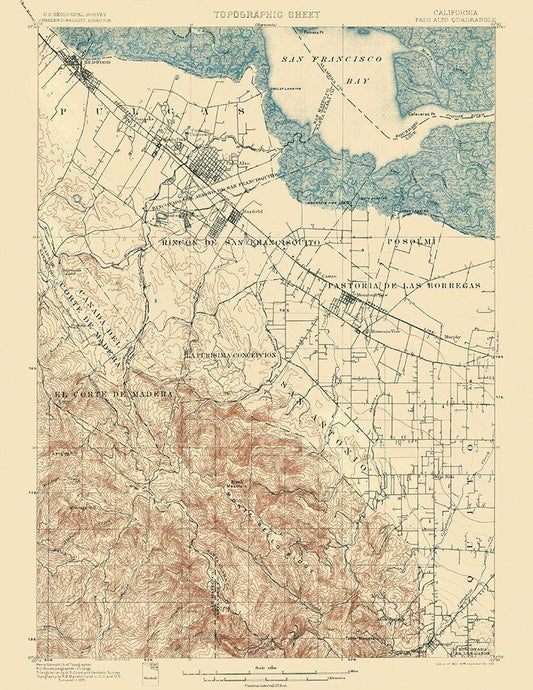 Palo Alto California Quad - USGS 1899 White Modern Wood Framed Art Print with Double Matting by USGS
