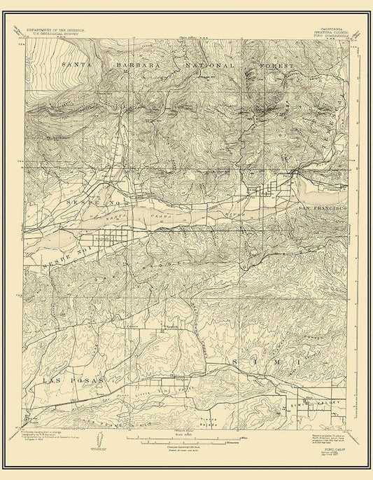 Piru California Quad - USGS 1921 White Modern Wood Framed Art Print with Double Matting by USGS