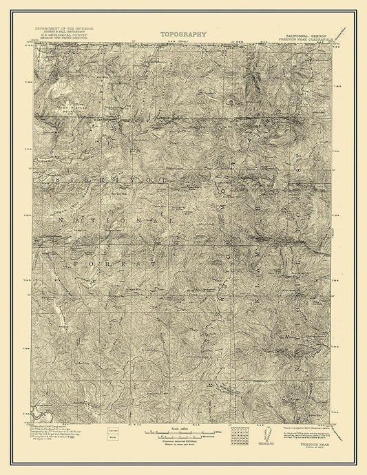 Preston Peak California Quad - USGS 1922 White Modern Wood Framed Art Print with Double Matting by USGS
