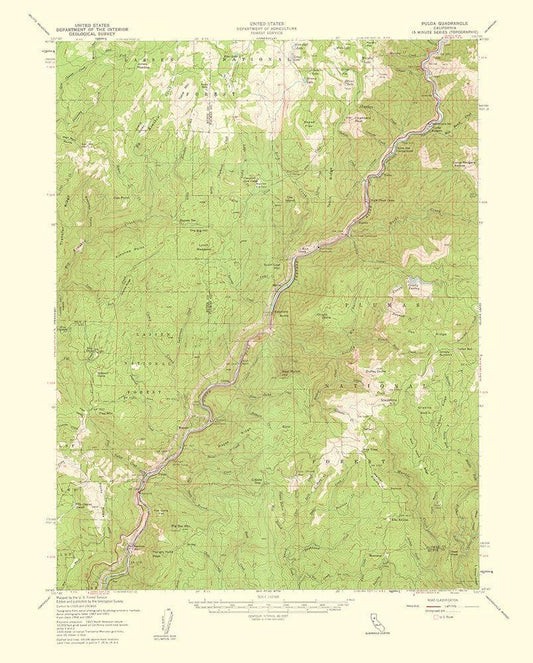 Pulga California Quad - USGS 1956 White Modern Wood Framed Art Print with Double Matting by USGS