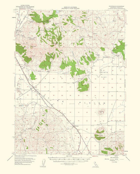 Ravendale California Quad - USGS 1956 White Modern Wood Framed Art Print with Double Matting by USGS