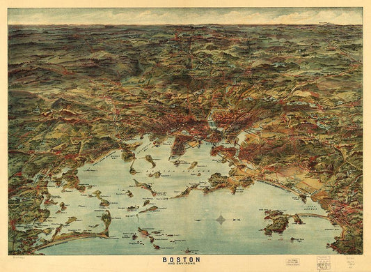 Boston and Environs White Modern Wood Framed Art Print with Double Matting by George Walker and Co