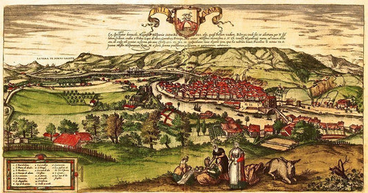 Innsbruck Austria Tyrol White Modern Wood Framed Art Print with Double Matting by Hogenberg, Braun