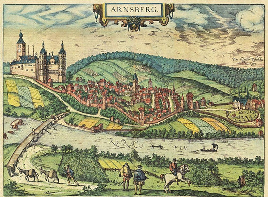 Arnsberg Germany White Modern Wood Framed Art Print with Double Matting by Hogenberg, Braun