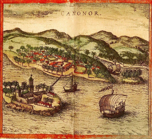 Cannanore Kannur India White Modern Wood Framed Art Print with Double Matting by Hogenberg, Braun