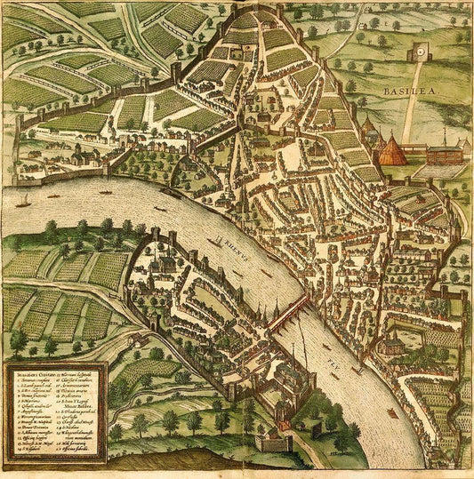 Basel Basle Switzerland White Modern Wood Framed Art Print with Double Matting by Hogenberg, Braun