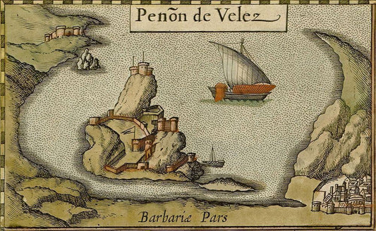 Penon de Velez de la Gomera White Modern Wood Framed Art Print with Double Matting by HONDIUS