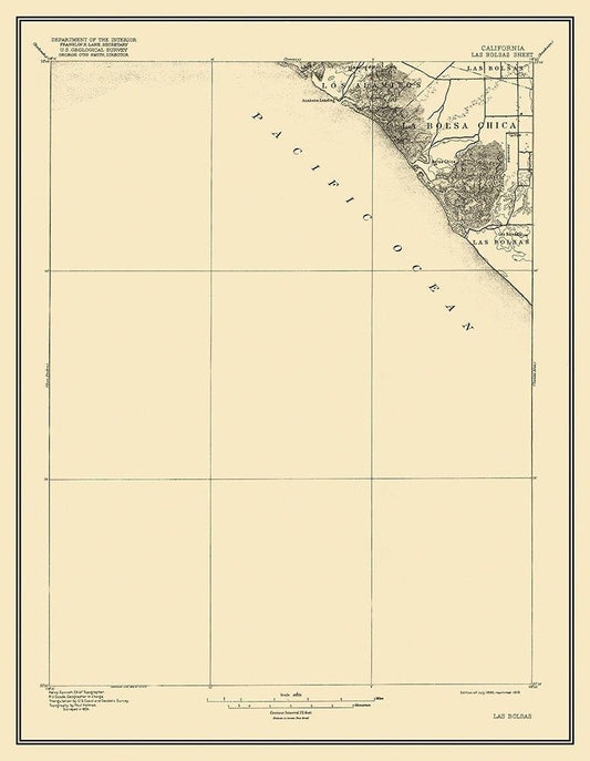 Las Bolsas California Quad - USGS 1896 White Modern Wood Framed Art Print with Double Matting by USGS