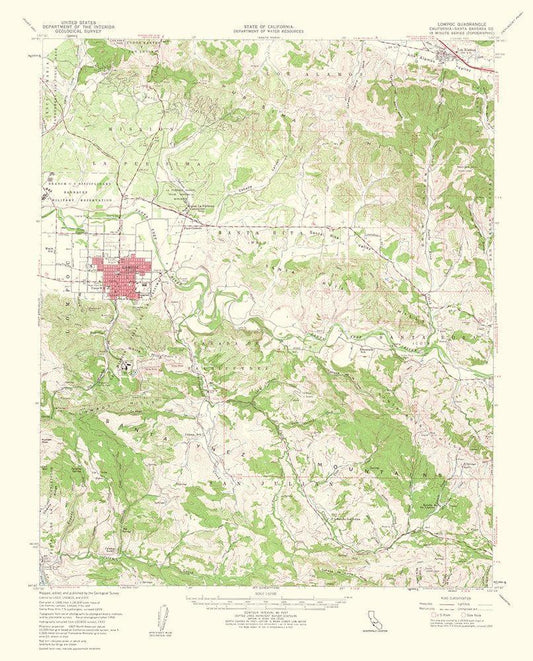 Lompoc California Quad - USGS 1961 White Modern Wood Framed Art Print with Double Matting by USGS