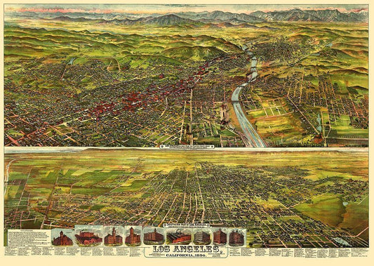 Los Angeles California - Pierce 1894 White Modern Wood Framed Art Print with Double Matting by Pierce