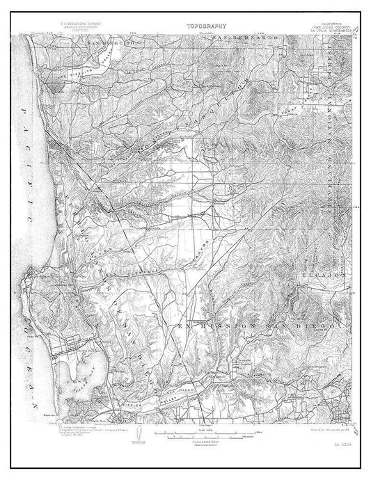 La Jolla California Quad - USGS 1903 White Modern Wood Framed Art Print with Double Matting by USGS