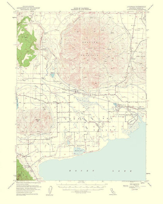 Litchfield California Quad - USGS 1954 White Modern Wood Framed Art Print with Double Matting by USGS