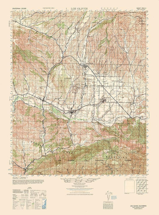 Los Olivos Sheet - US Army 1942 White Modern Wood Framed Art Print with Double Matting by US Army