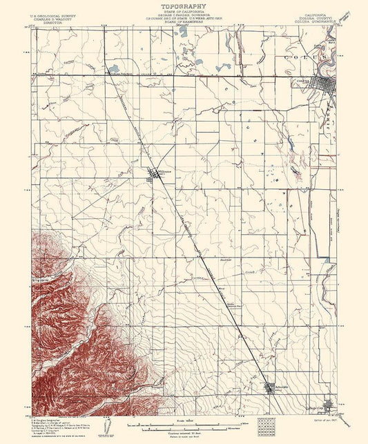 Colusa California Quad - USGS 1907 White Modern Wood Framed Art Print with Double Matting by USGS