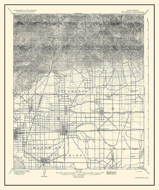 Cucamonga California Quad - USGS 1932 White Modern Wood Framed Art Print with Double Matting by USGS