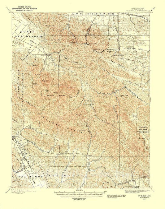 Mt Diablo California Quad - USGS 1896 White Modern Wood Framed Art Print with Double Matting by USGS