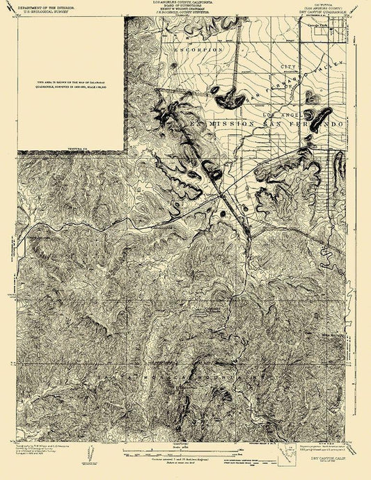 Dry Canyon California Quad - USGS 1932 White Modern Wood Framed Art Print with Double Matting by USGS