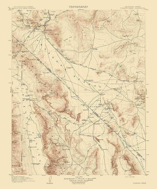 Furnace Creek California Nevada Quad - USGS 1908 White Modern Wood Framed Art Print with Double Matting by USGS