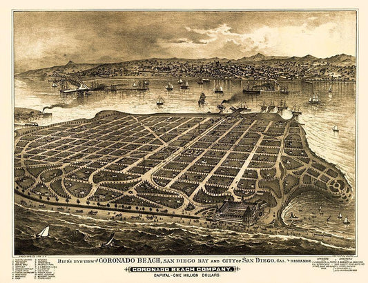 Coronado Beach California - Moore 1887 White Modern Wood Framed Art Print with Double Matting by Moore
