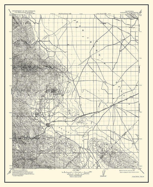 Coalinga California Quad - USGS 1912 White Modern Wood Framed Art Print with Double Matting by USGS