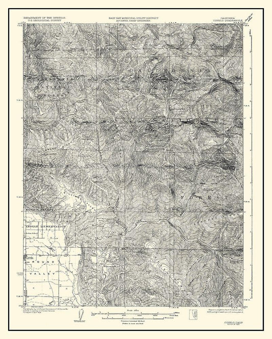 Covelo California Quad - USGS 1926 White Modern Wood Framed Art Print with Double Matting by USGS