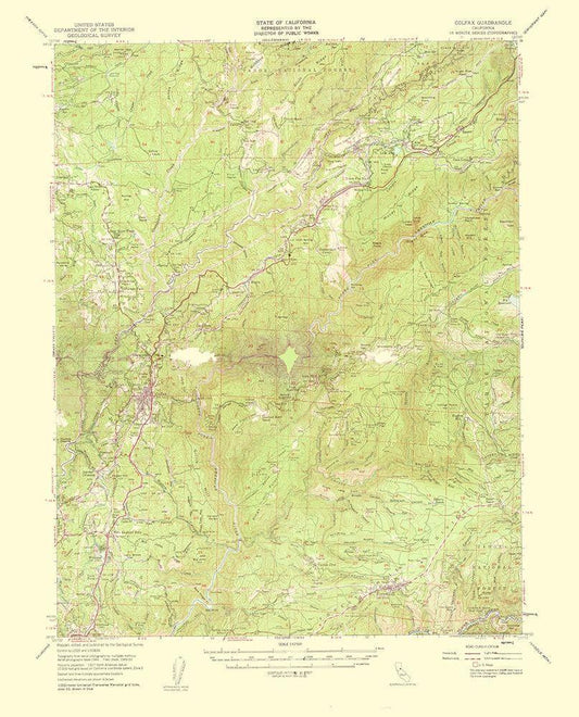 Colfax California Quad - USGS 1961 White Modern Wood Framed Art Print with Double Matting by USGS
