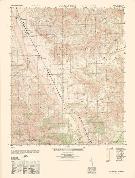 Cuyama Peak Sheet - US Army 1943 White Modern Wood Framed Art Print with Double Matting by US Army