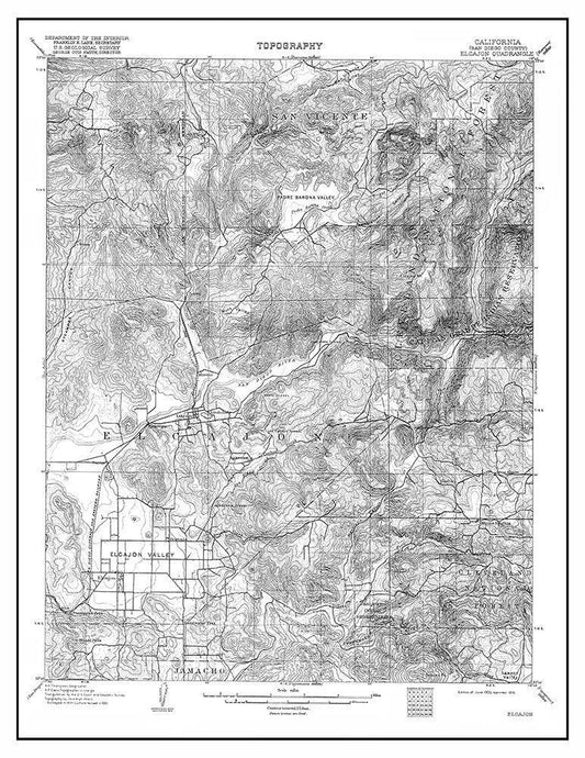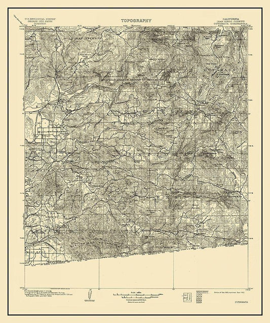 Cuyamaca California Quad - USGS 1903 White Modern Wood Framed Art Print with Double Matting by USGS